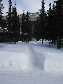 Wow, I feel like I haven't posted in AGES. I guess that's what having a normal work schedule is like? Being at work is pretty much just an extension of cabin life anyway. The Chalet in Denali Park is still absolutely COVERED in snow. To get from one building to another, I have to traverse through snow tunnel walkways...